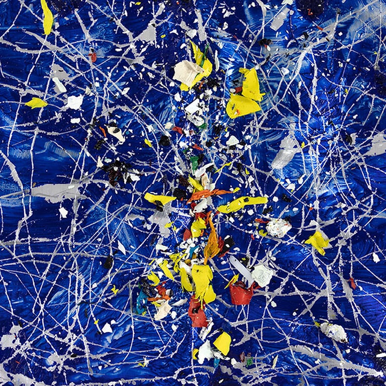 In a small but positive gesture to support the environment Basil aims for a sustainable art practice. In this print series he etches, shaves and sculpts used oil and acrylic paint materials to compose unique abstracts - elevating excess and detritus to art. These dynamic landscapes are then photographed and printed locally on sustainably sourced archival cotton rag paper.